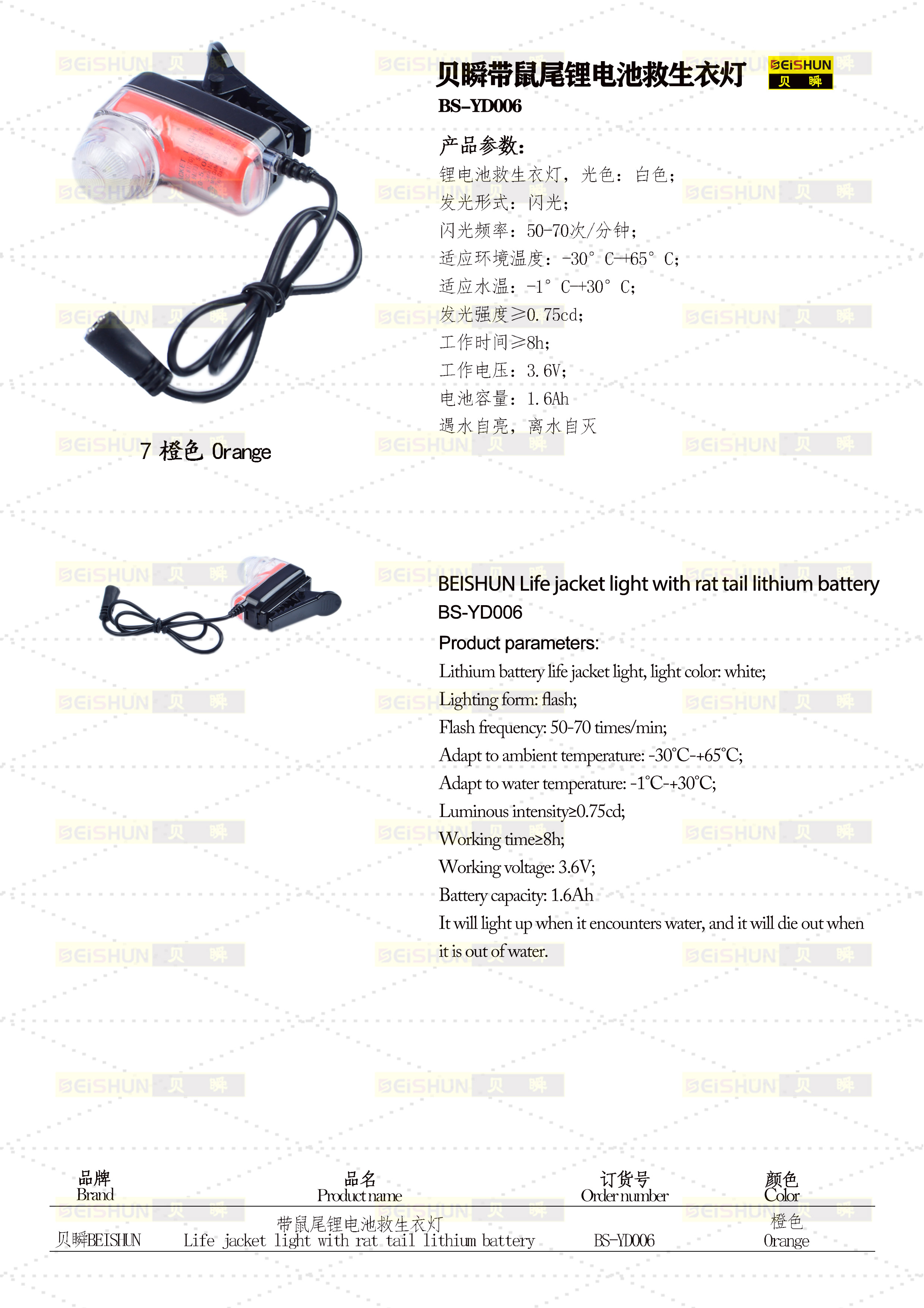 YD006带鼠尾锂电池救生衣灯