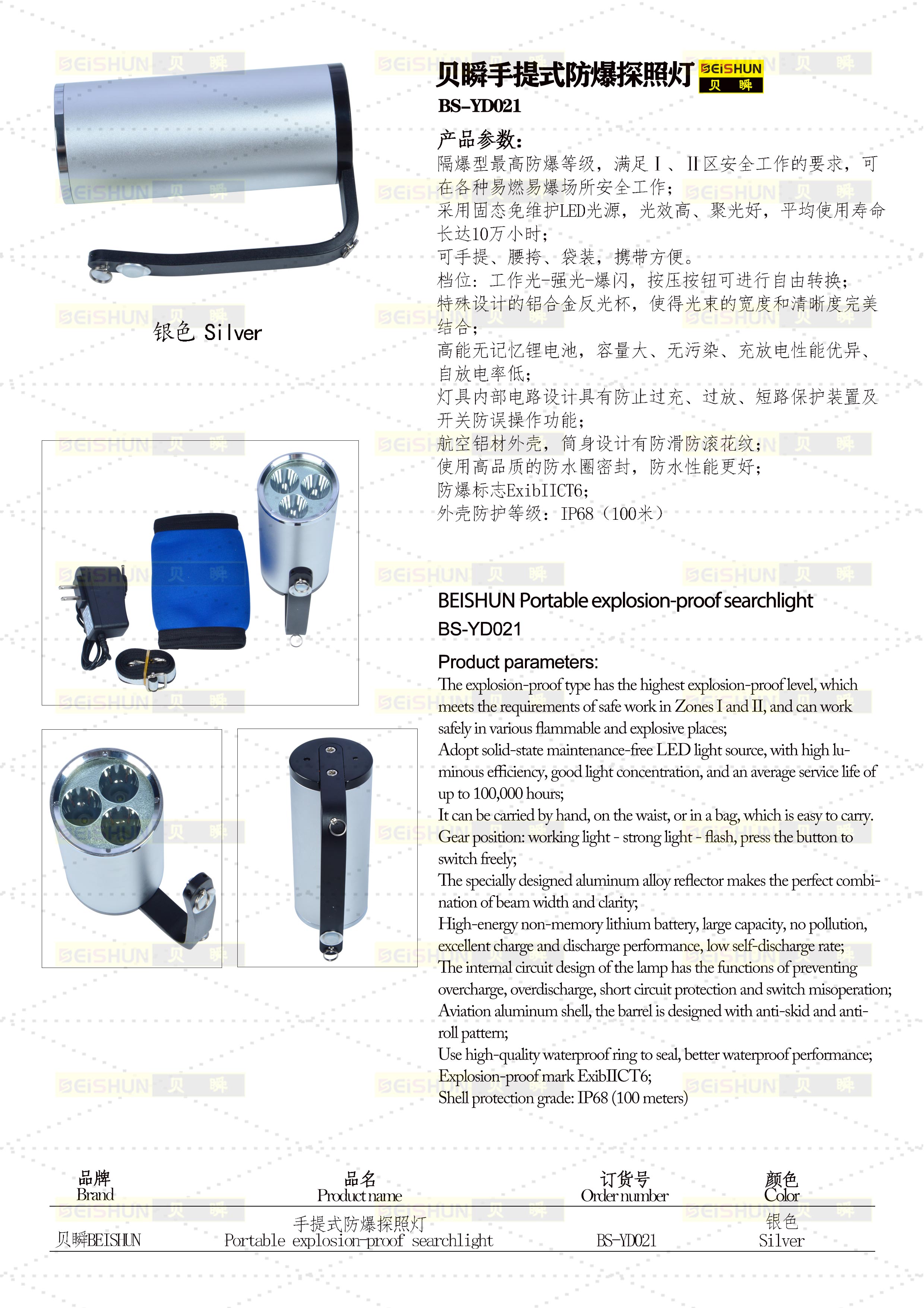 YD021手提式防爆探照灯