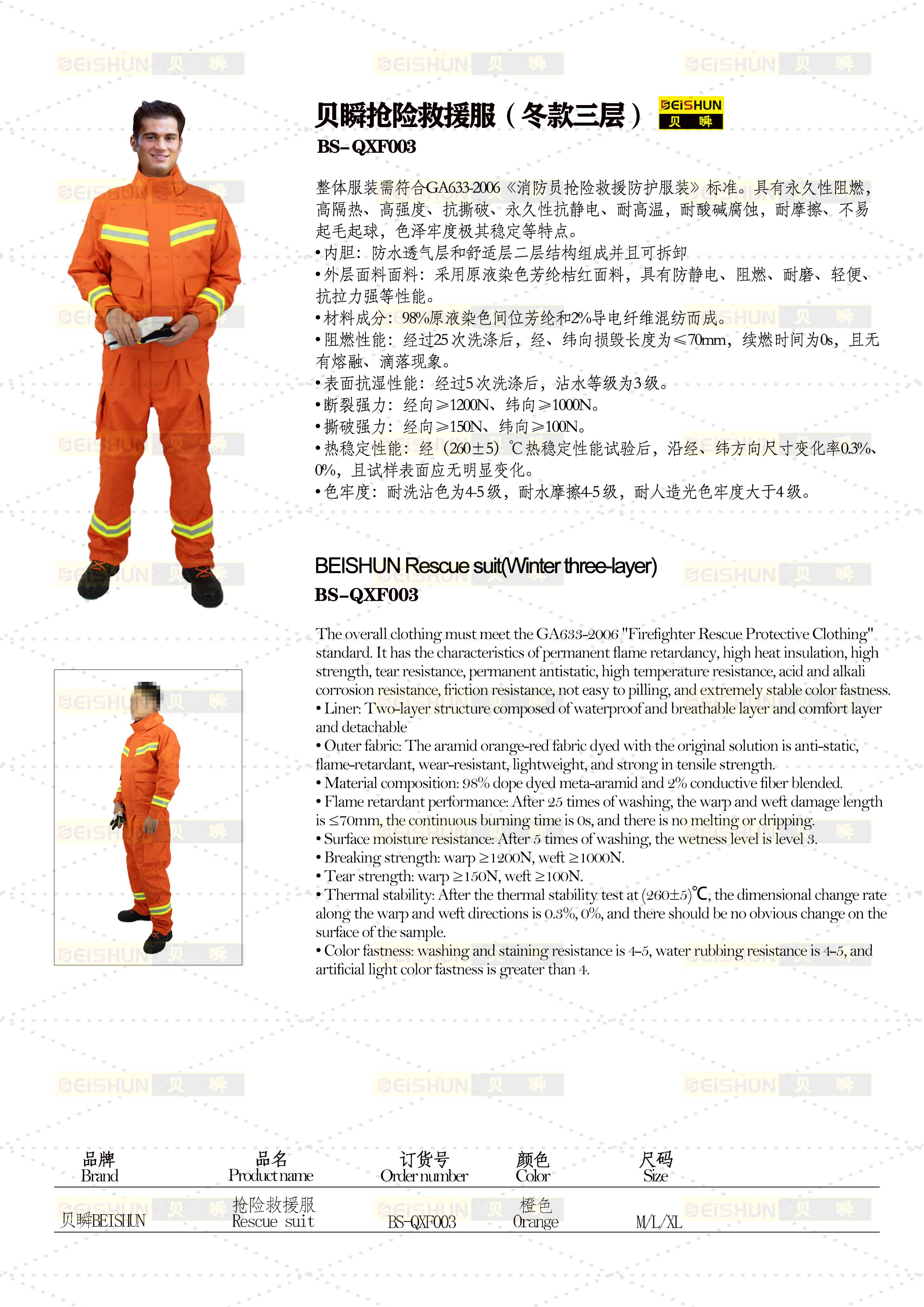 QXF003抢险救援服(冬款三层)
