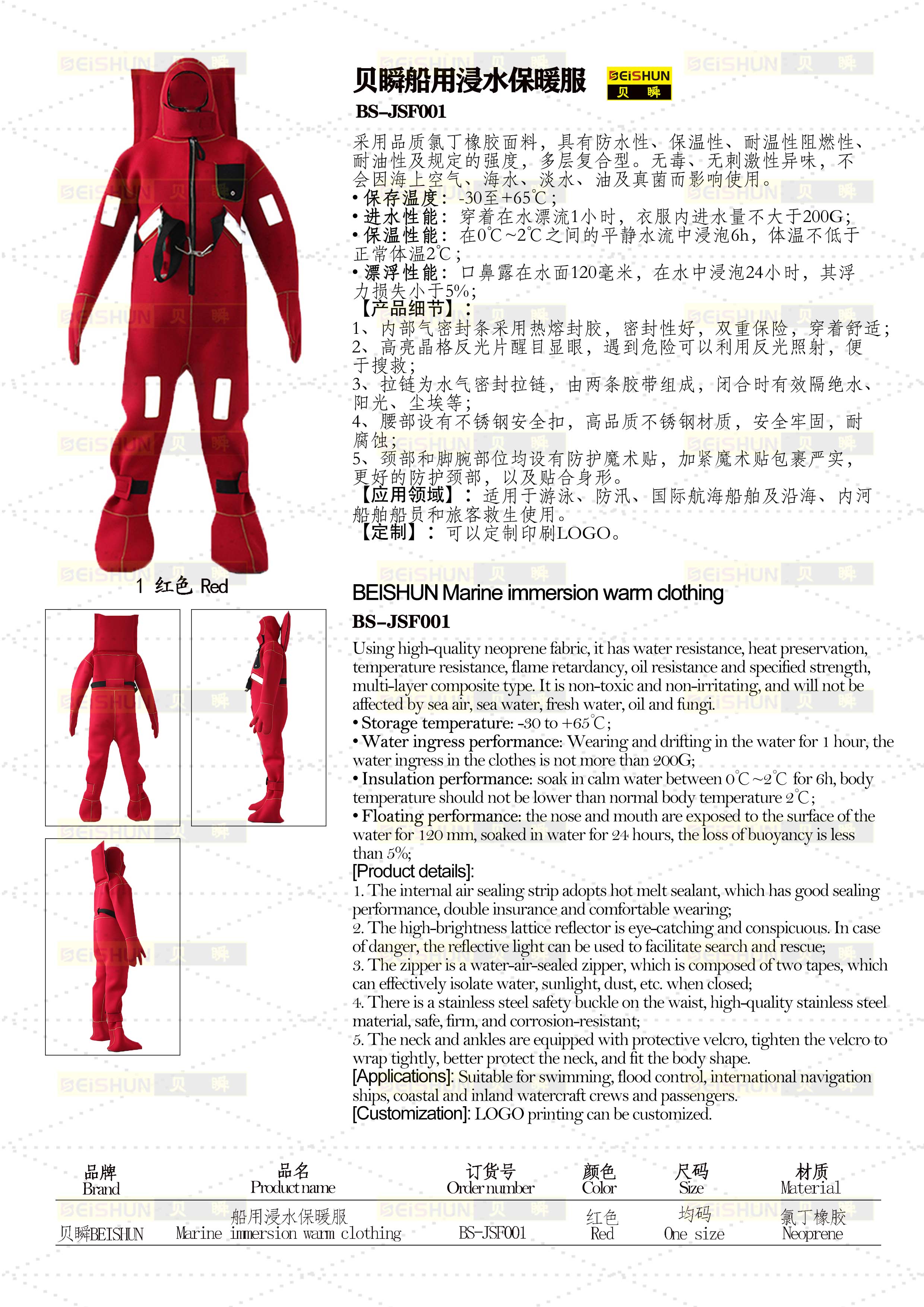 JSF001船用浸水保暖服