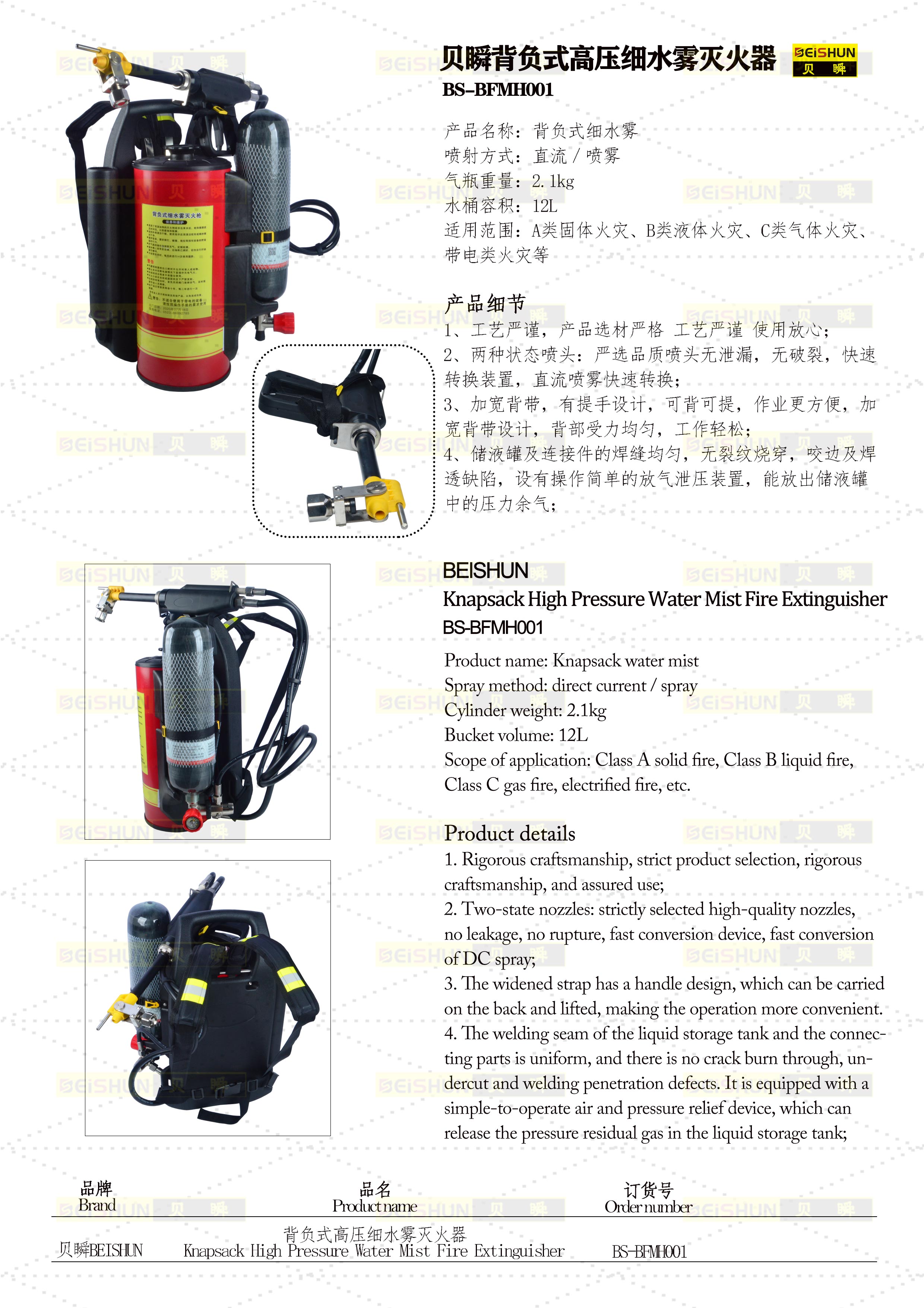 BFMH001背负式高压细水雾灭火器