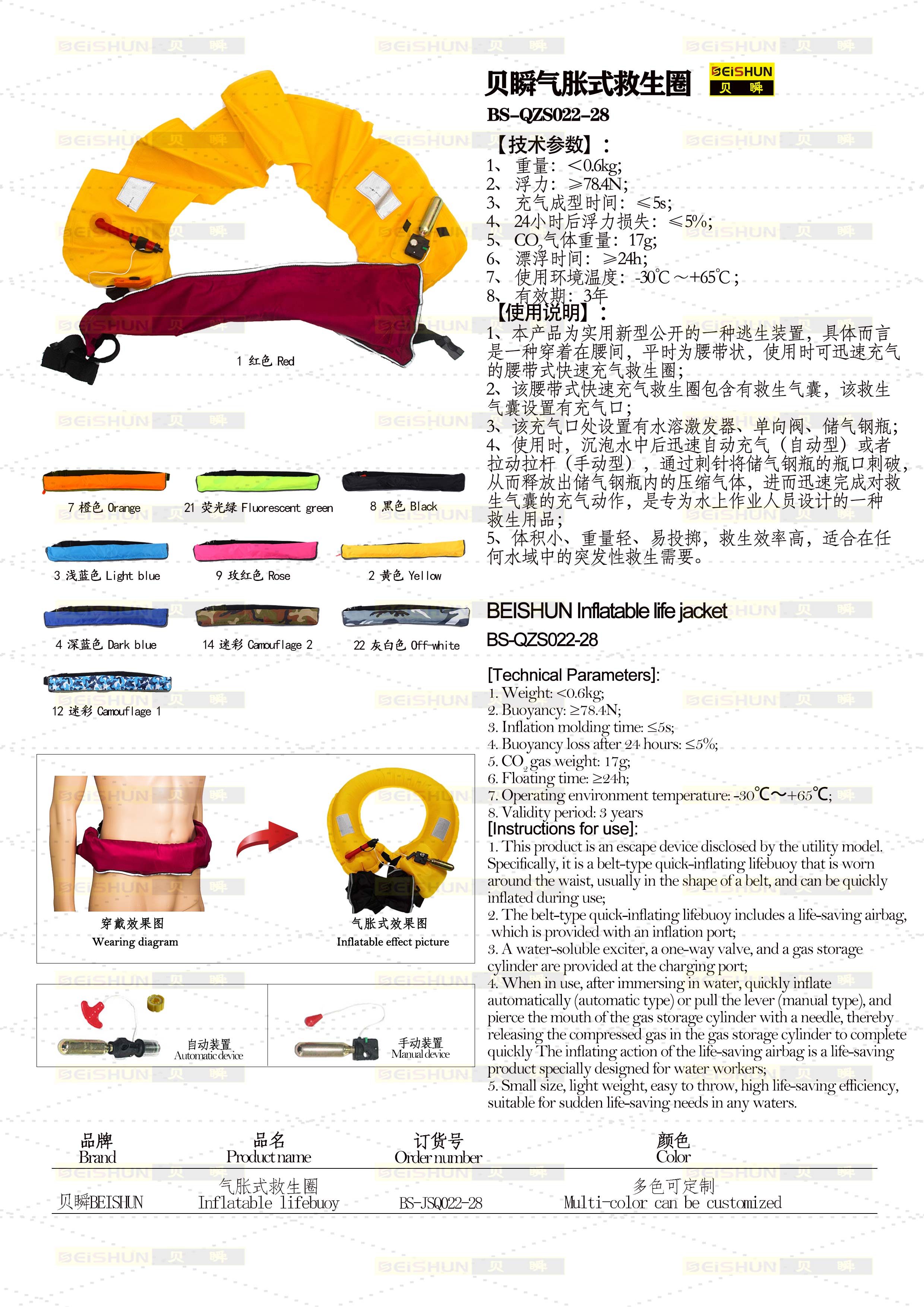 QZS022-28气胀式救生圈